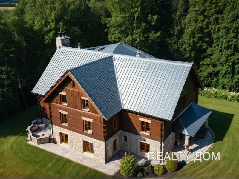 Металлическая кровля с гладкой поверхностью и минимальным профилем подходит для уклонов от 5 до 15 градусов при условии сплошного монтажа на обрешетку. Швы необходимо герметизировать уплотнительной лентой, чтобы исключить проникновение влаги. Толщина листов в диапазоне 0,5–0,7 мм обеспечивает оптимальный баланс между прочностью и нагрузкой на стропила.